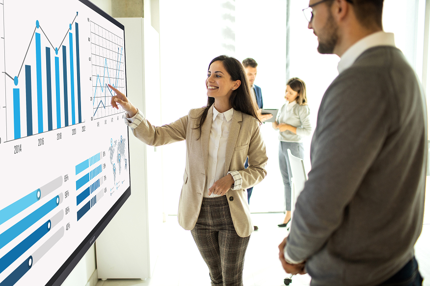 An interactive whiteboard, like the Sharp AQUOS Board®, allows you to write, draw, and annotate directly on the screen. Unlike a regular TV or monitor, it includes touch functionality and collaboration software. This makes meetings, lessons, and presentations more engaging. You can also connect it to computers and mobile devices for sharing files and presentations.